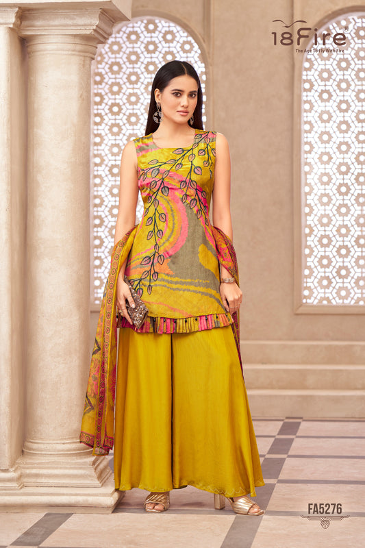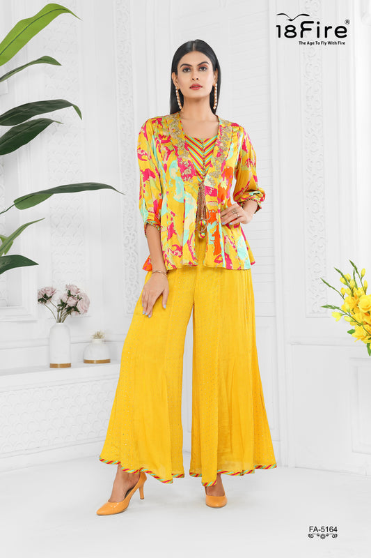 Radiant Yellow Printed Indo-Western Palazzo Set (FA5164)