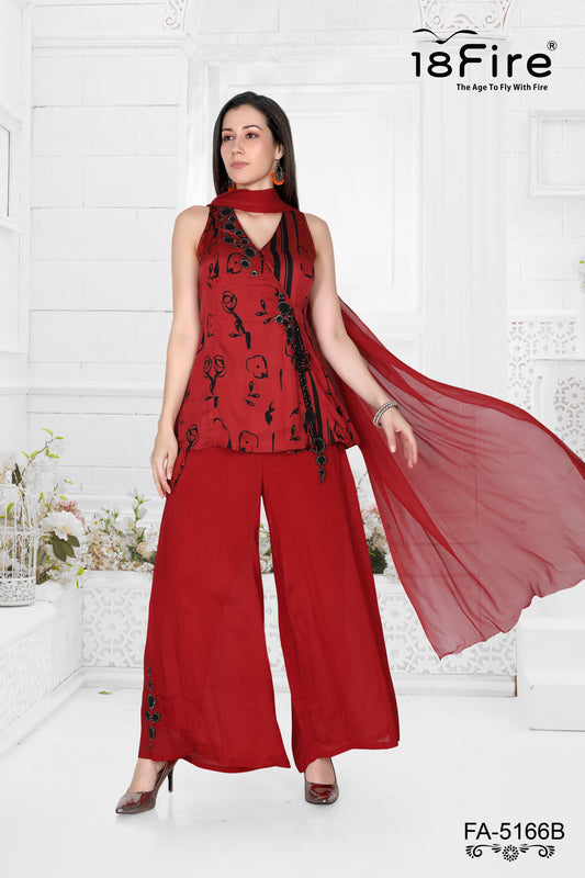 Elegant Red Asymmetrical Kurti & Sharara Set with Dupatta (FA5166B)