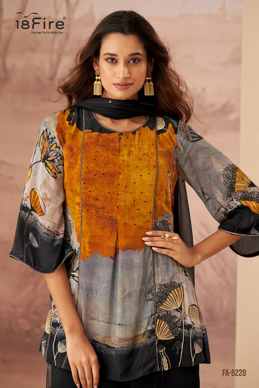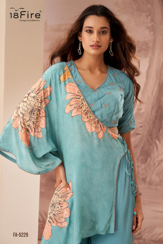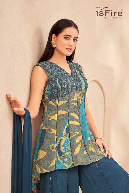 Elegant Digital Printed Short Top with detailed handwork to feel richness paired with matching dupatta and palazzo (FA5215)