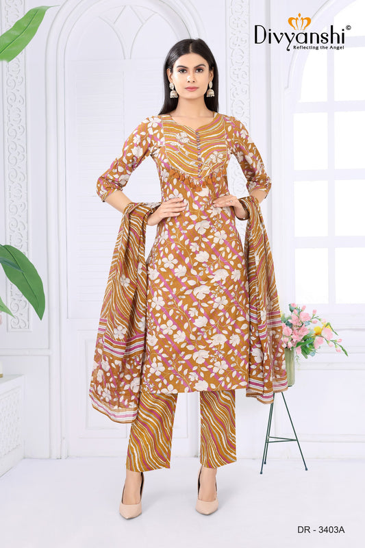 Premium Designer Straight Fit Kurti with matching bottom and dupatta to complete your look (DR3403A)