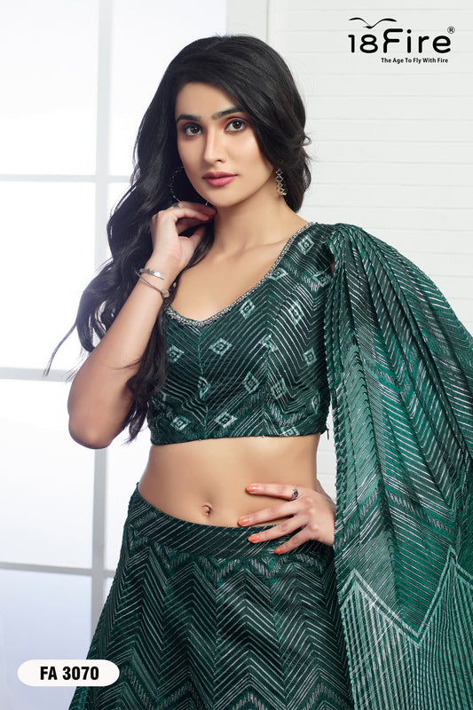 Traditional Designer Set with detailed zari embroidery work on Jacket, Croptop Blouse and Bottom Hemline - FA3062